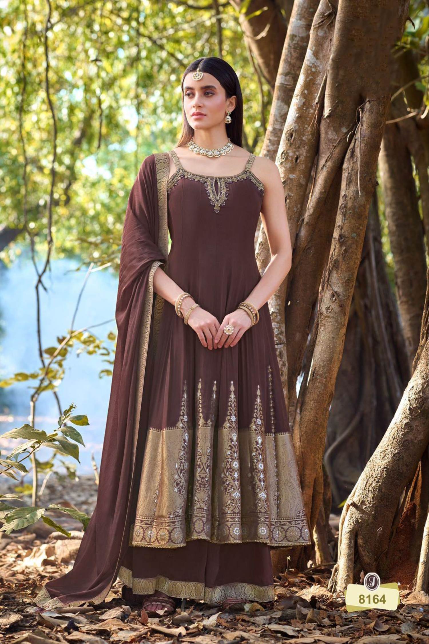 Brown Color Designer Spaghetti Style Anarkali Suit :: ANOKHI FASHION