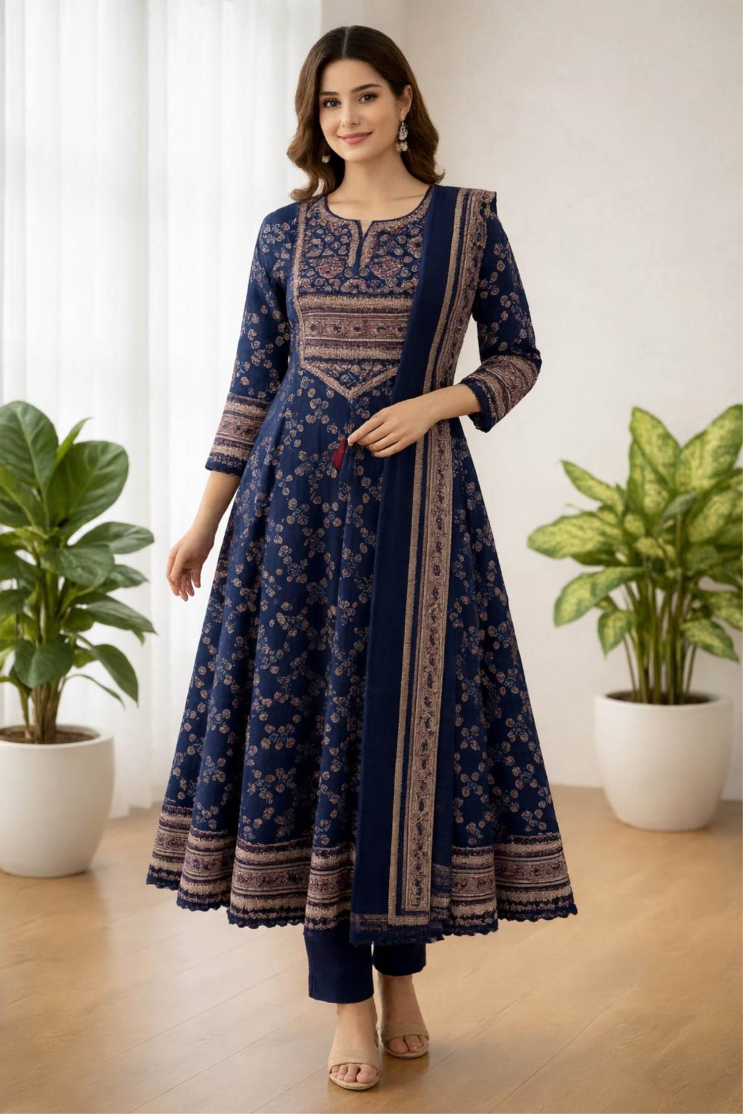 Blue Color Casual Collection Anarkali Style Kurti Set :: ANOKHI FASHION