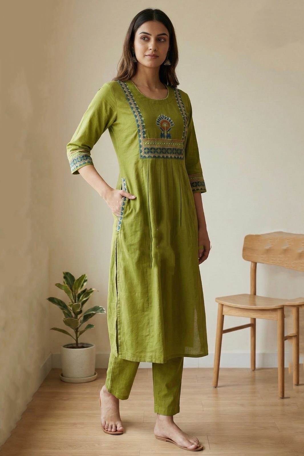 Green Color Casual Collection Kurti Set :: ANOKHI FASHION