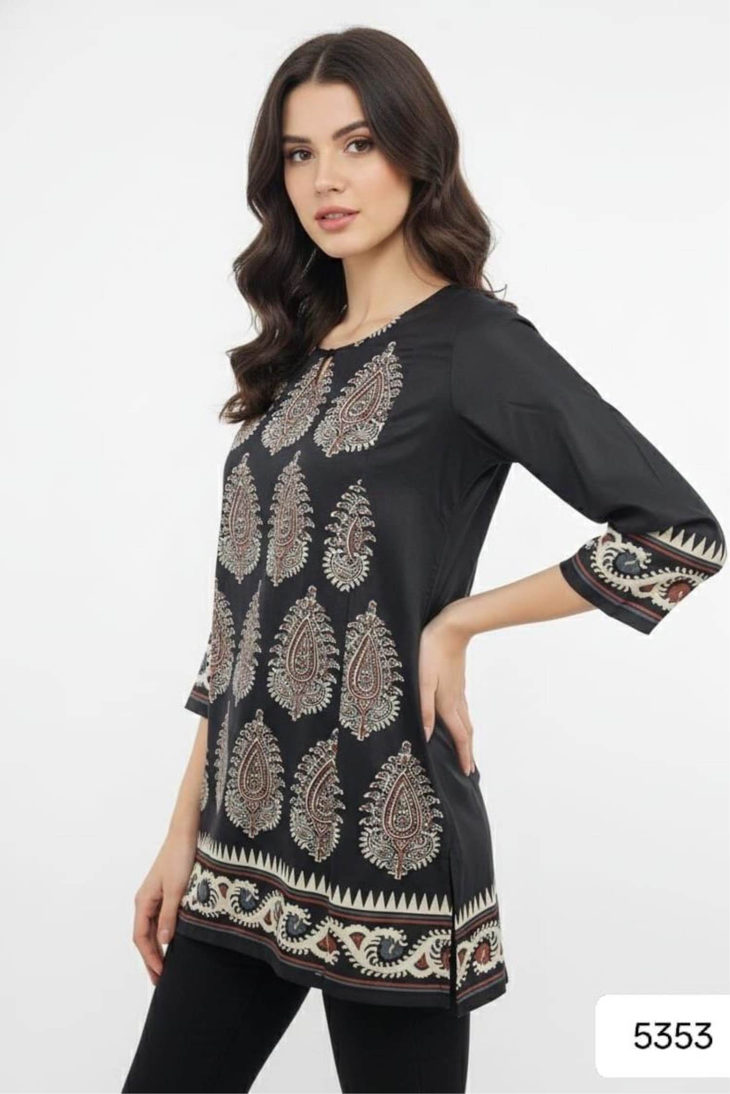 Black Color Casual Collection Printed Short Kurti :: ANOKHI FASHION