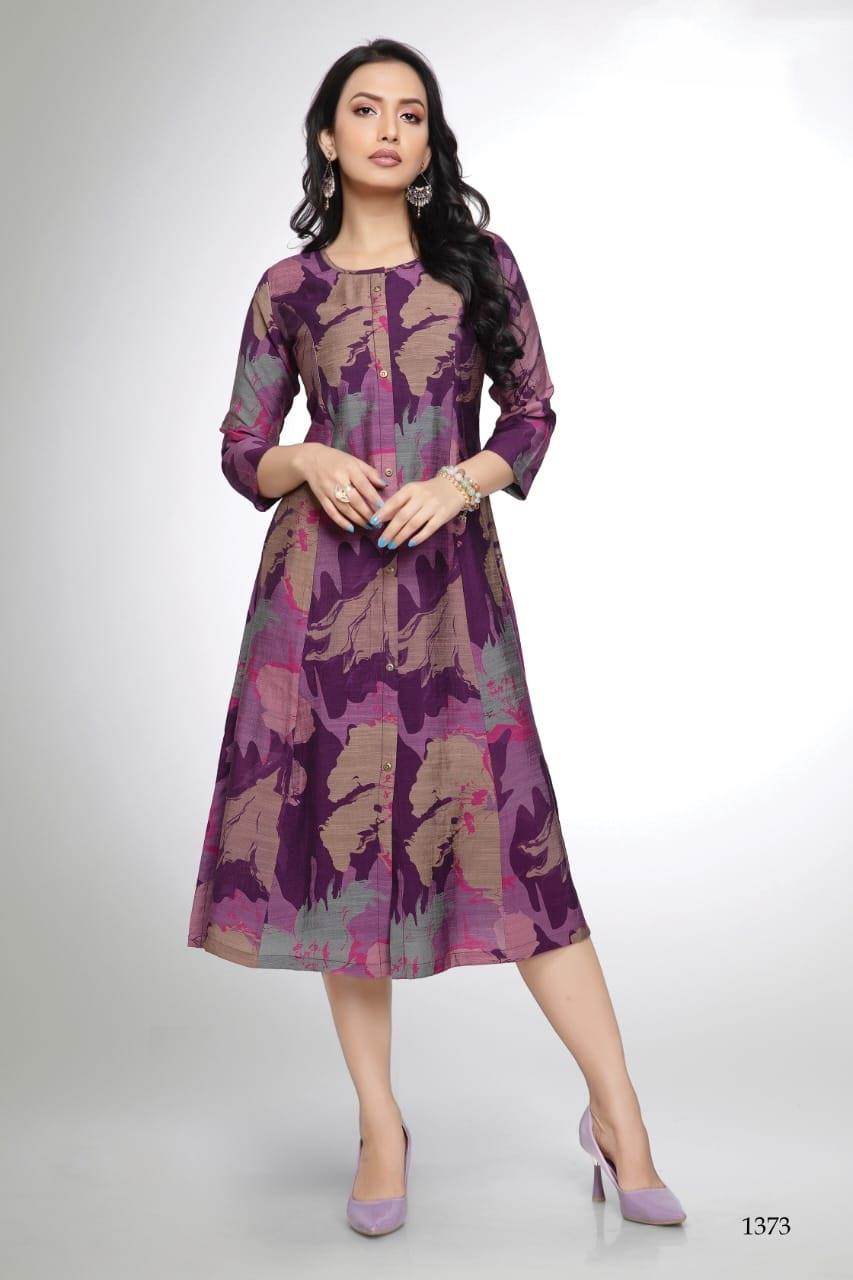 Wine Color Casual Wear A Line Style Kurti