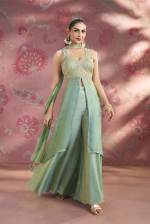 Sea Green Color Party Wear Designer Indo-Western Plazo Suit