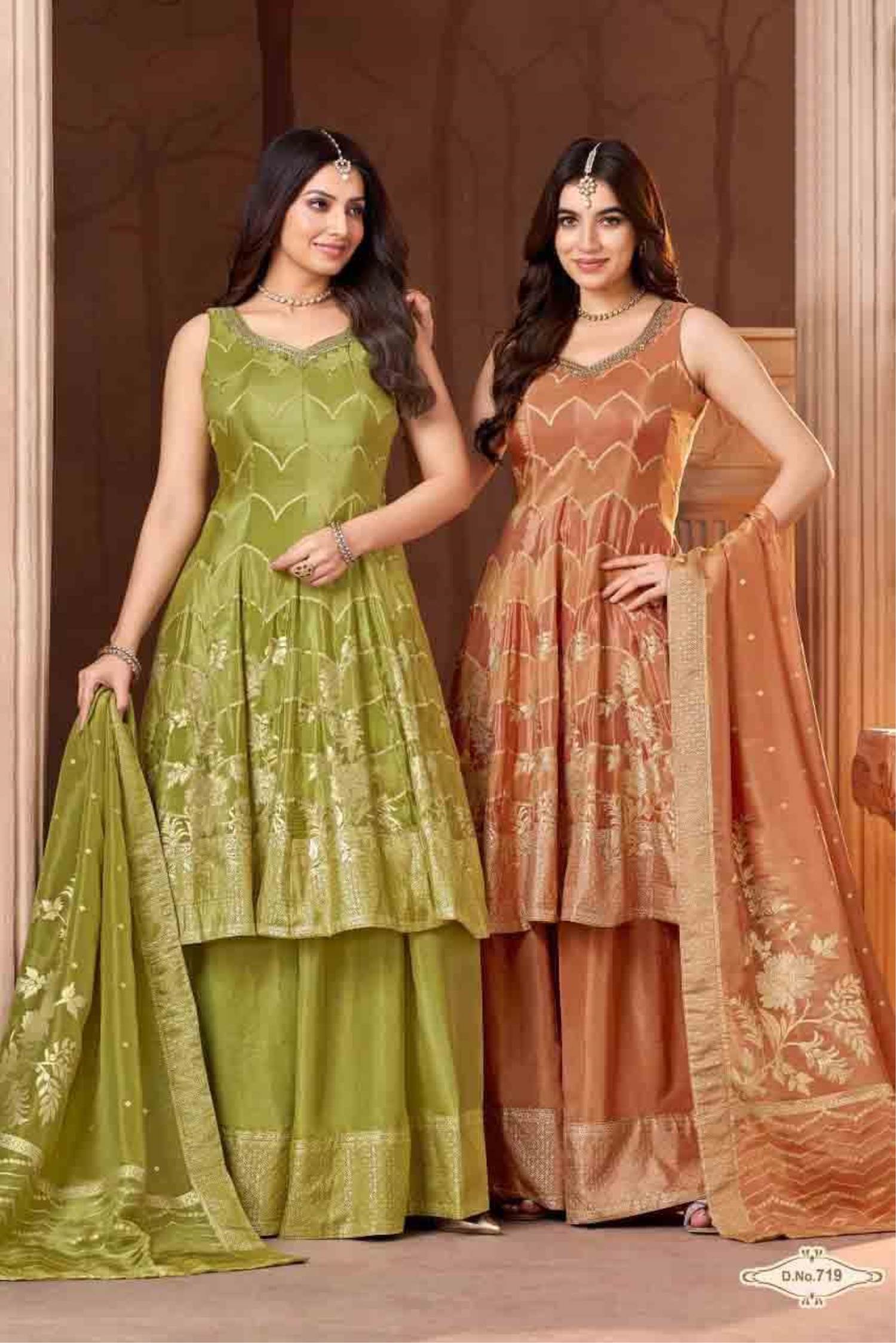 Rust Color Party Wear Designer Indo-Western Anarkali Style Plazo Suit :: ANOKHI FASHION