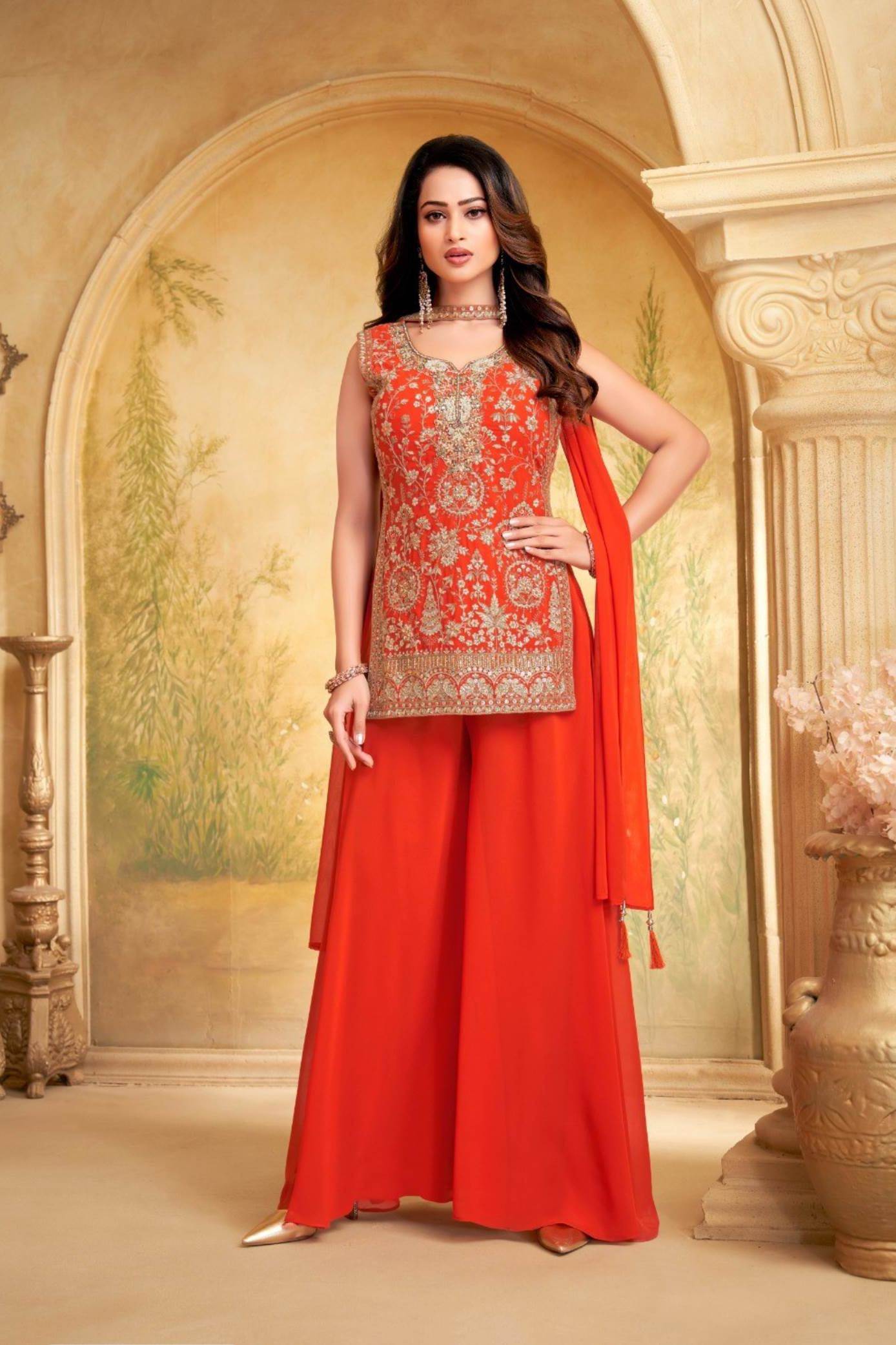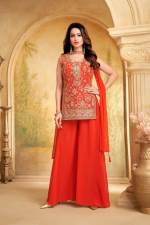 Rust Color Party Wear Designer Indo-Western Plazo Suit