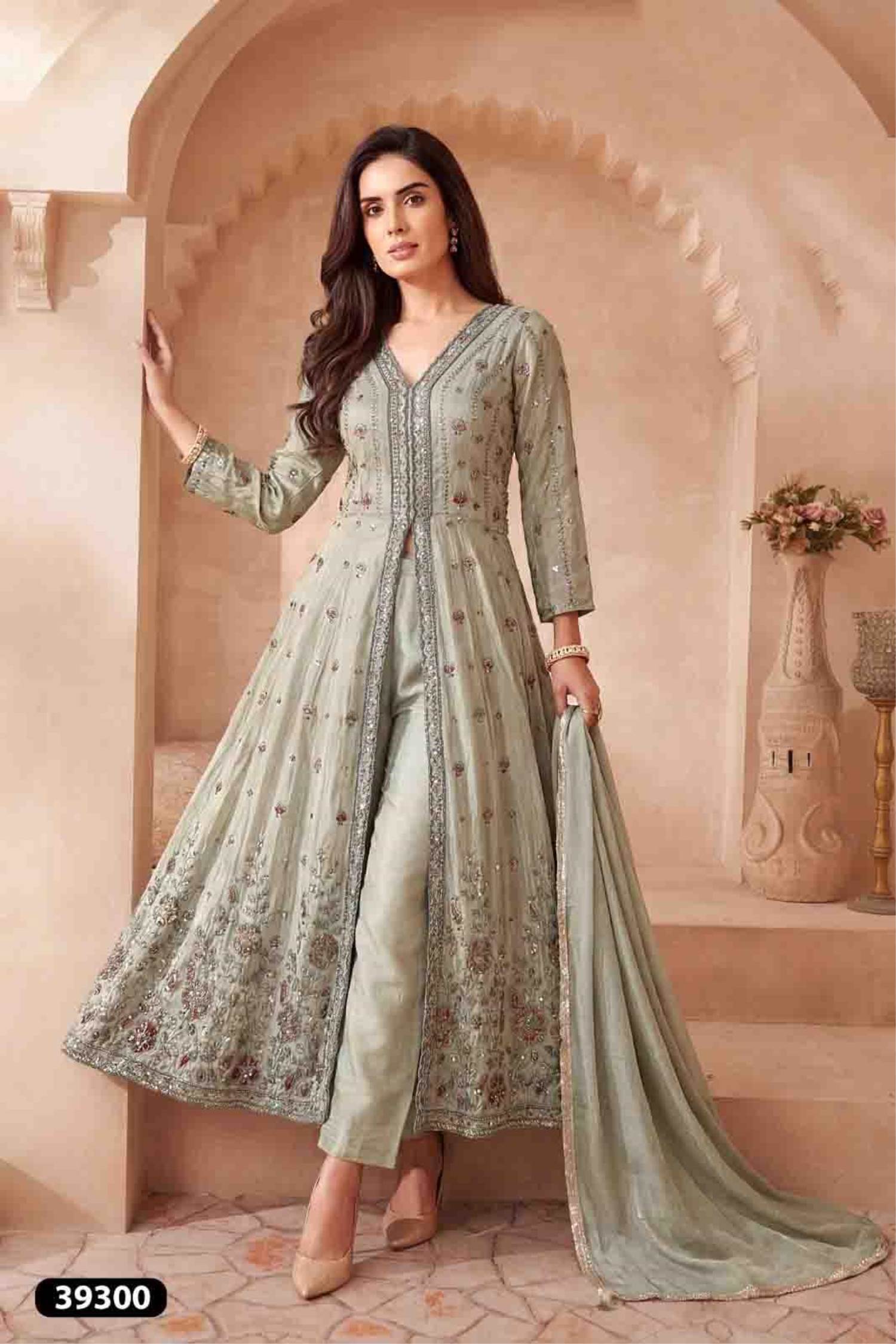 Grey Color Party Wear Designer Indo-Western Suit :: ANOKHI FASHION