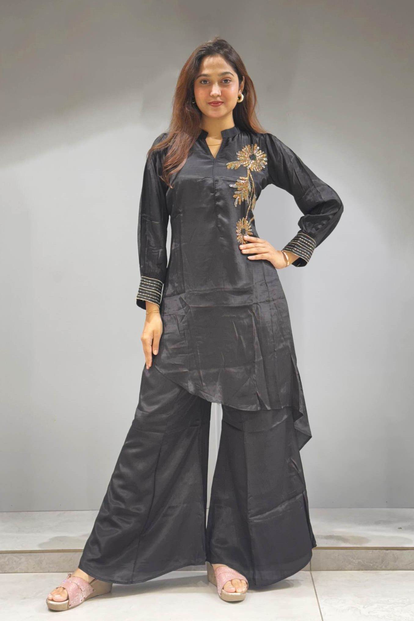Black Color Party Wear Designer Indo-Western Plazo Suit
