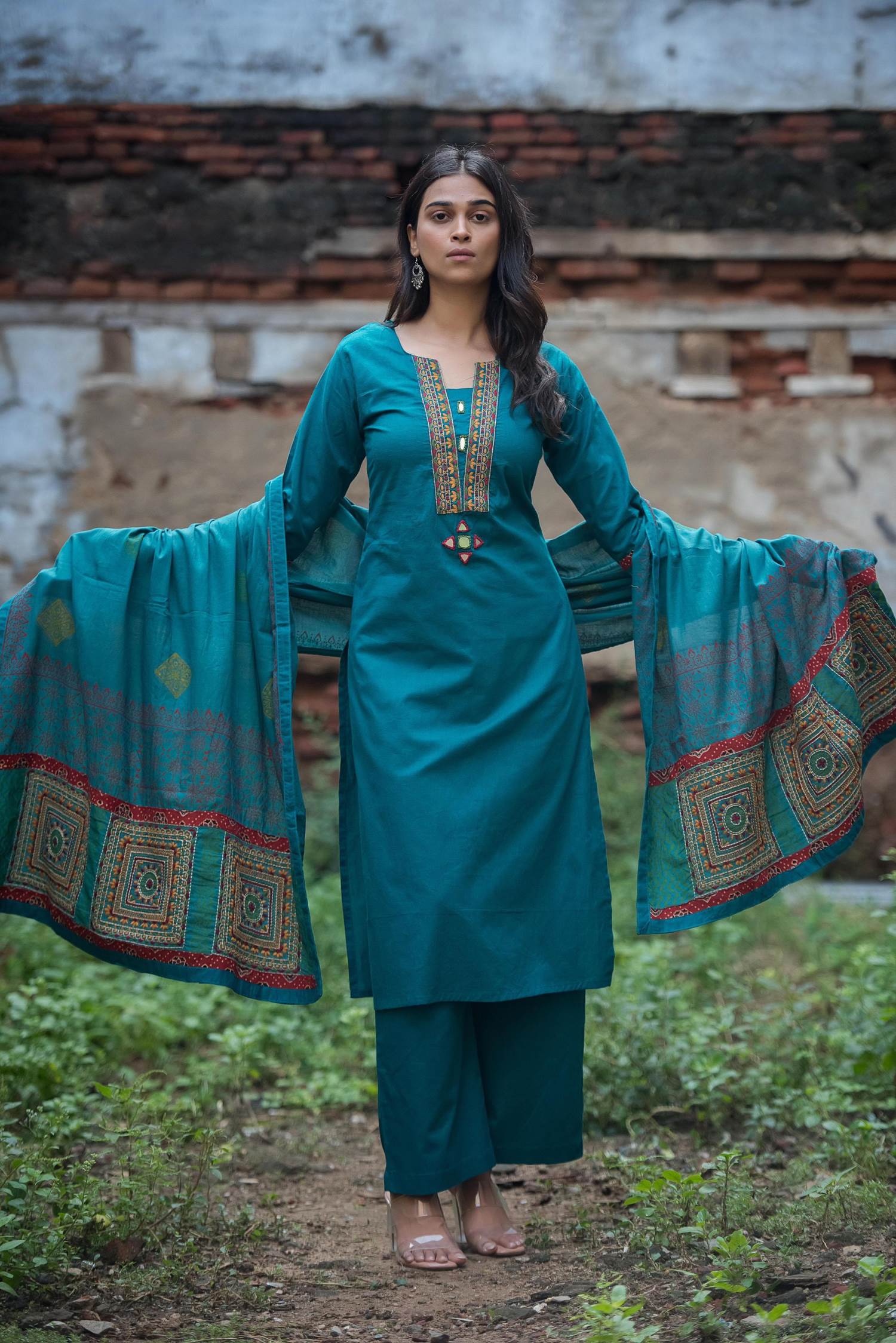 Rama Color Casual Collection Designer Kurti with Plazo Dupatta :: ANOKHI FASHION