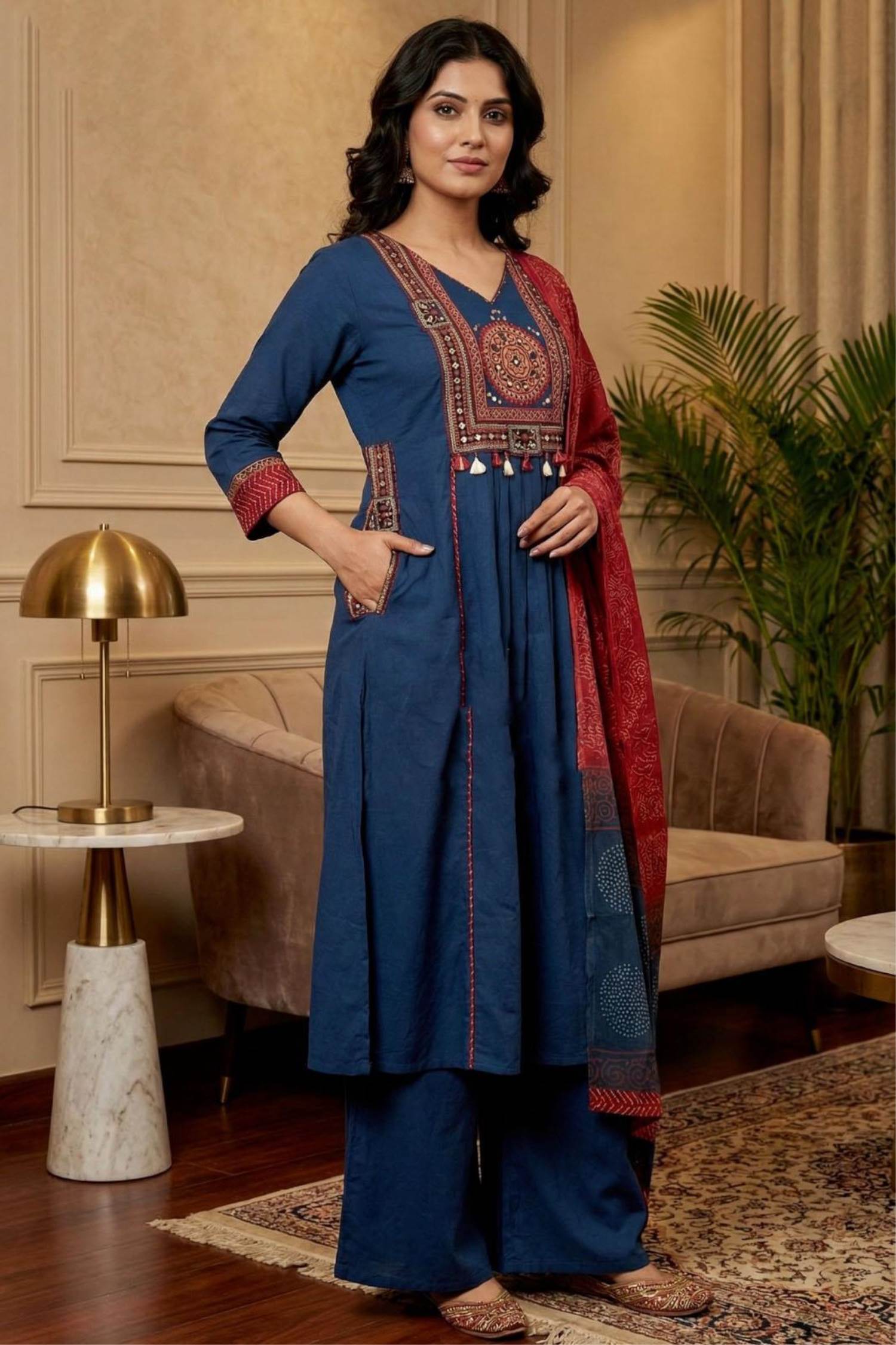 Blue Color Casual Collection Kurti Plazo with Dupatta :: ANOKHI FASHION