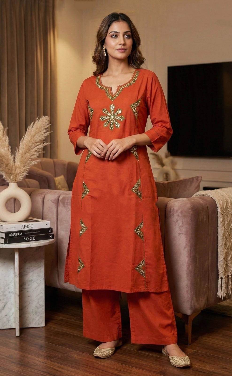 Rust Color Casual Collection Kurti with Plazo :: ANOKHI FASHION