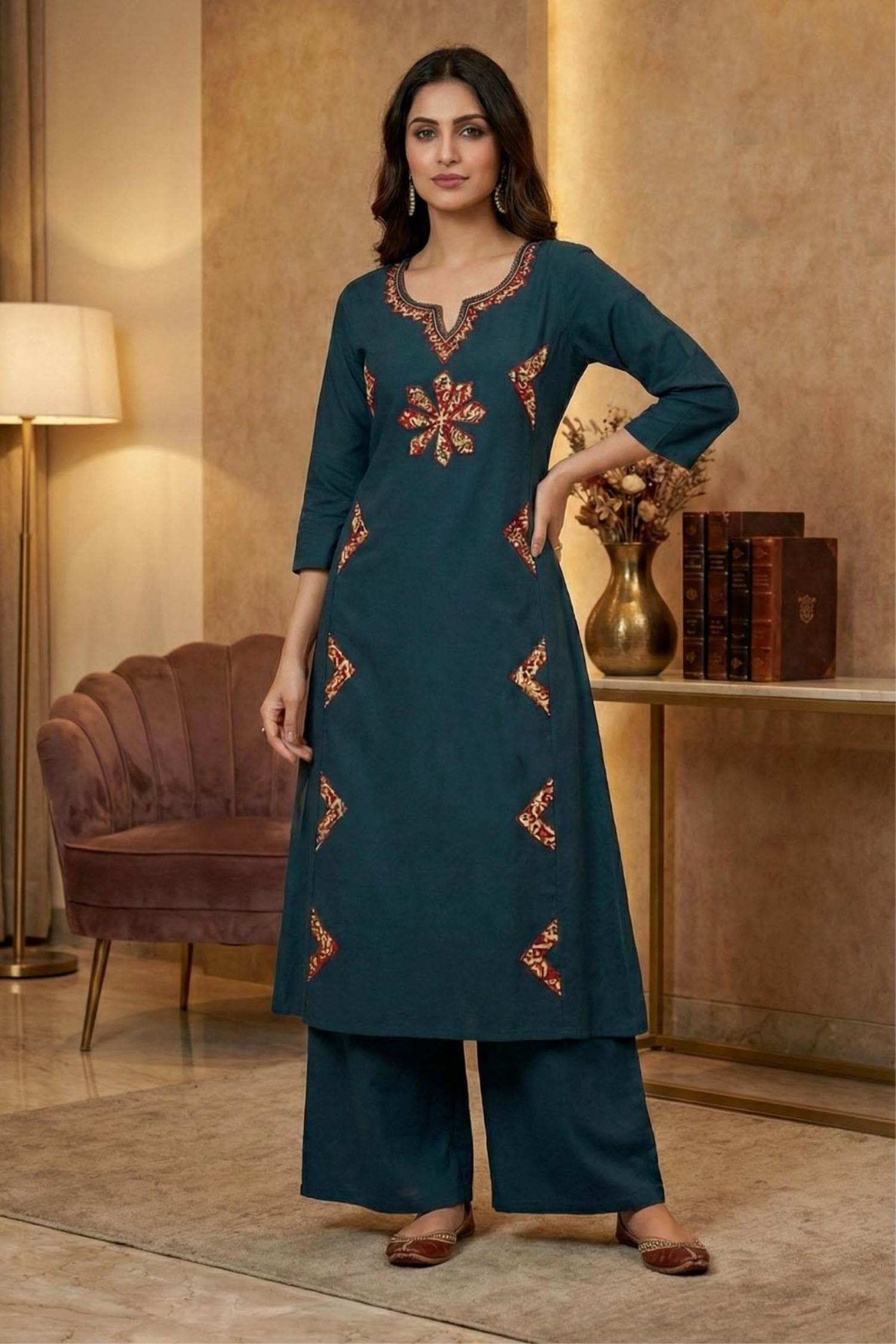 Peacock Color Casual Collection Kurti with Plazo :: ANOKHI FASHION