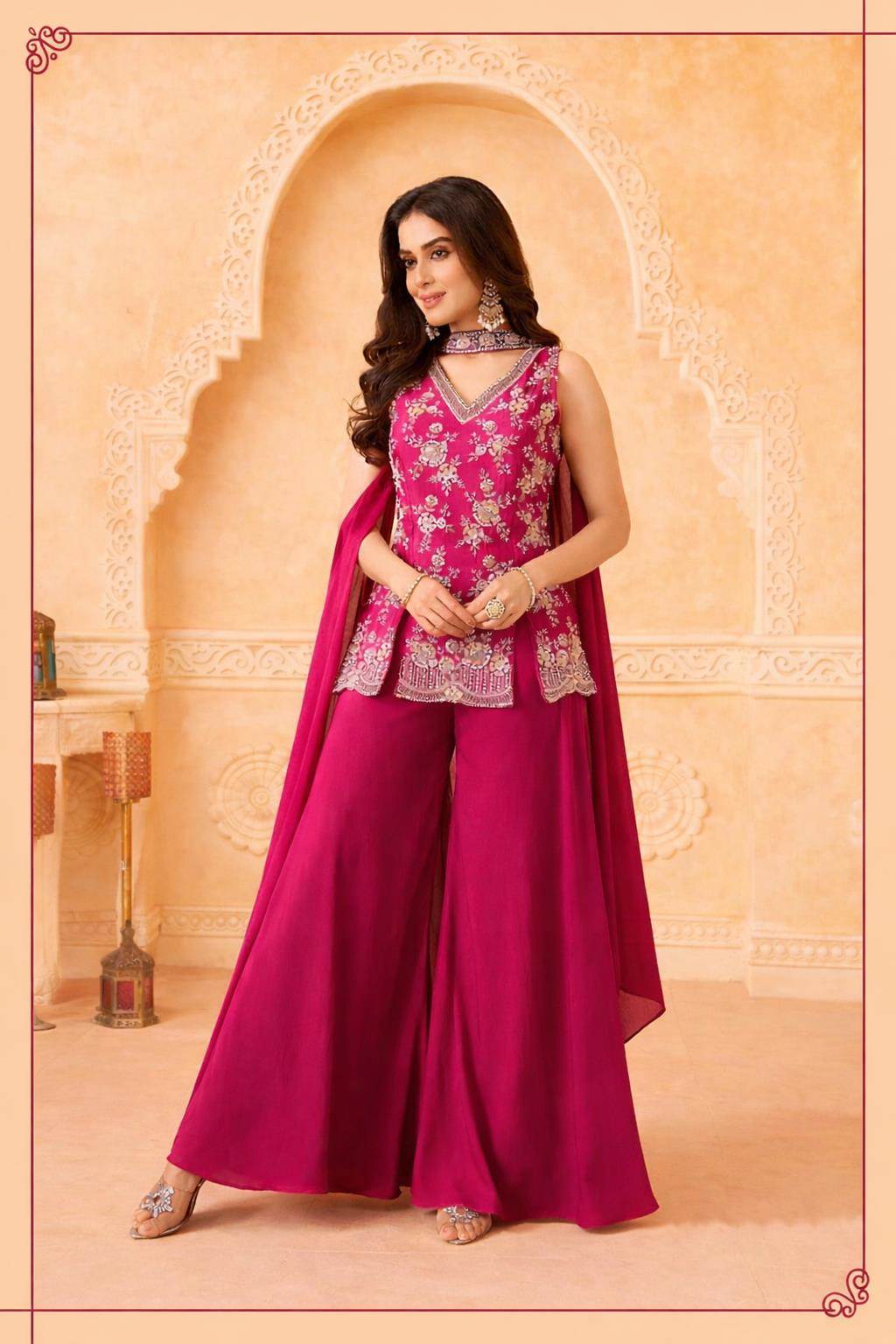 Rani Color Party Wear Designer Indo-Western Plazo Suit