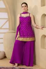 Purple Color Party Wear Designer Speghetti Style Indo-Western Plazo Suit