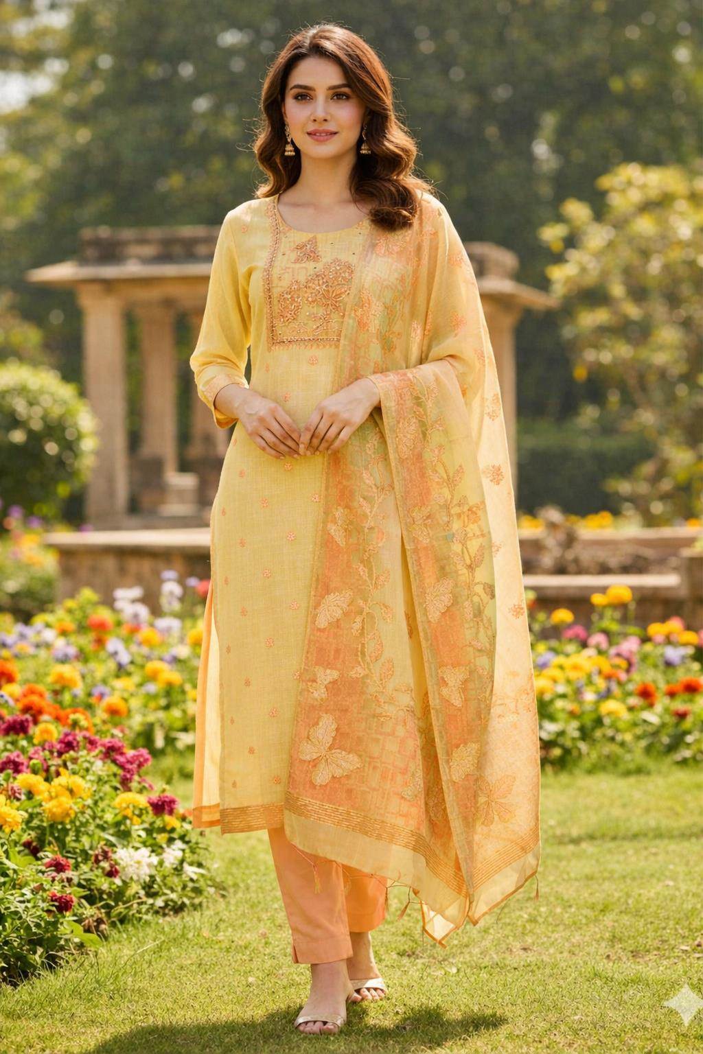 Lemon Color Party Wear Designer Straight Long Suit :: ANOKHI FASHION