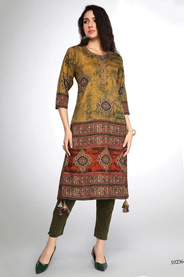 Mehandi Color Party Wear Designer Kurti :: ANOKHI FASHION