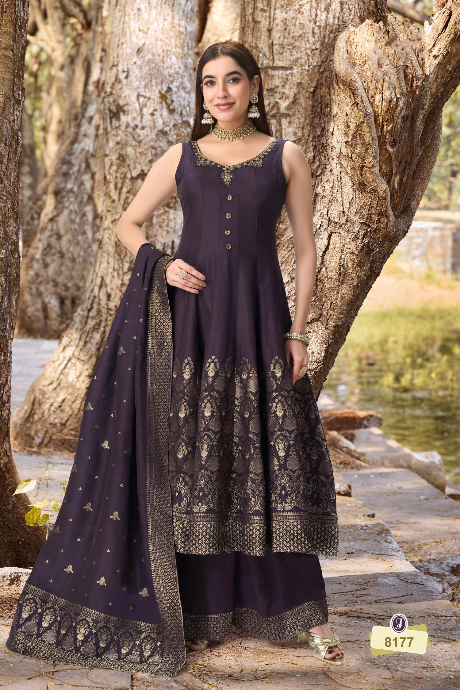 Wine Color Party Wear Designer Indo-Western Anarkali Suit