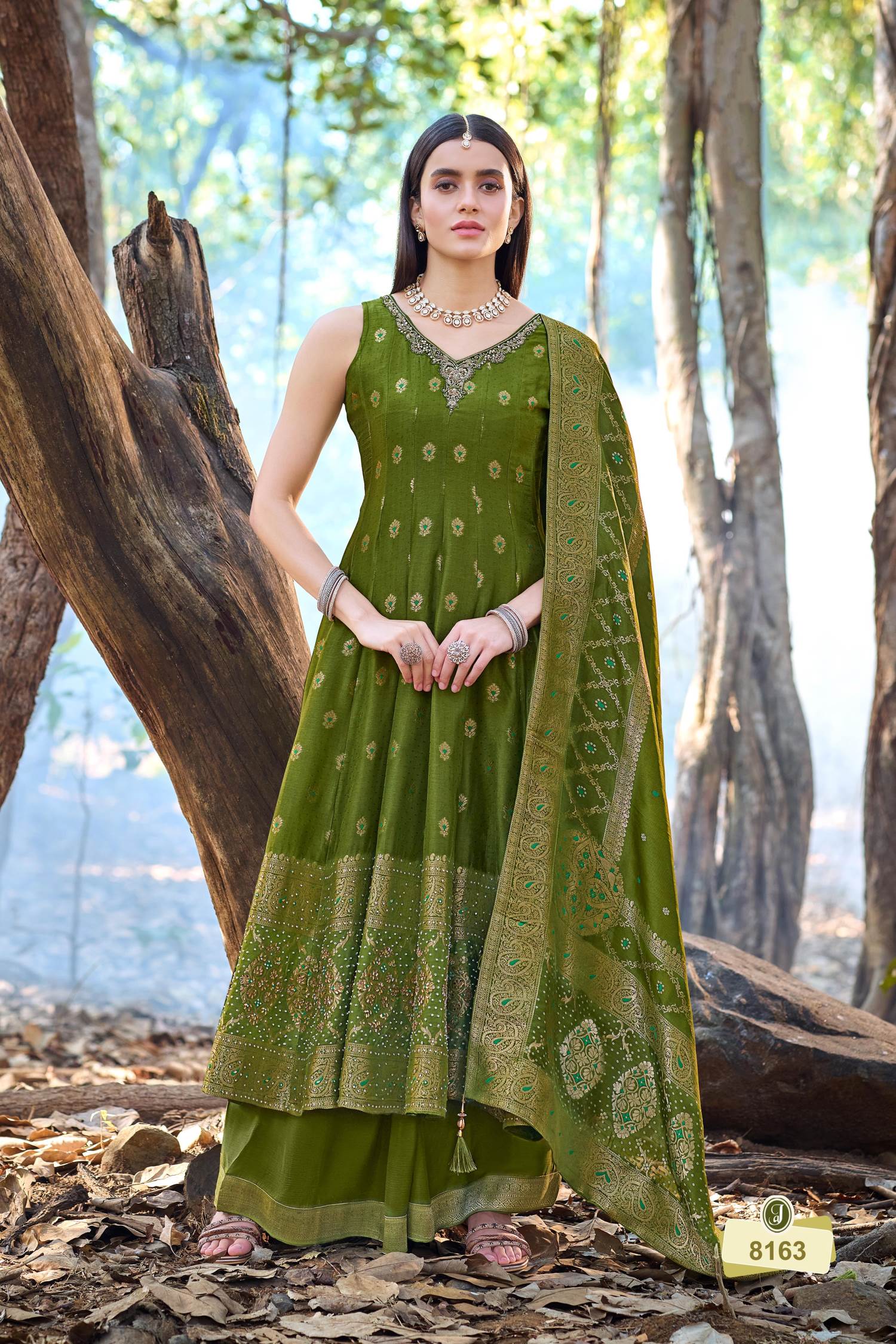 Mehndi Color Party Wear Designer Indo-Western Anarkali Suit