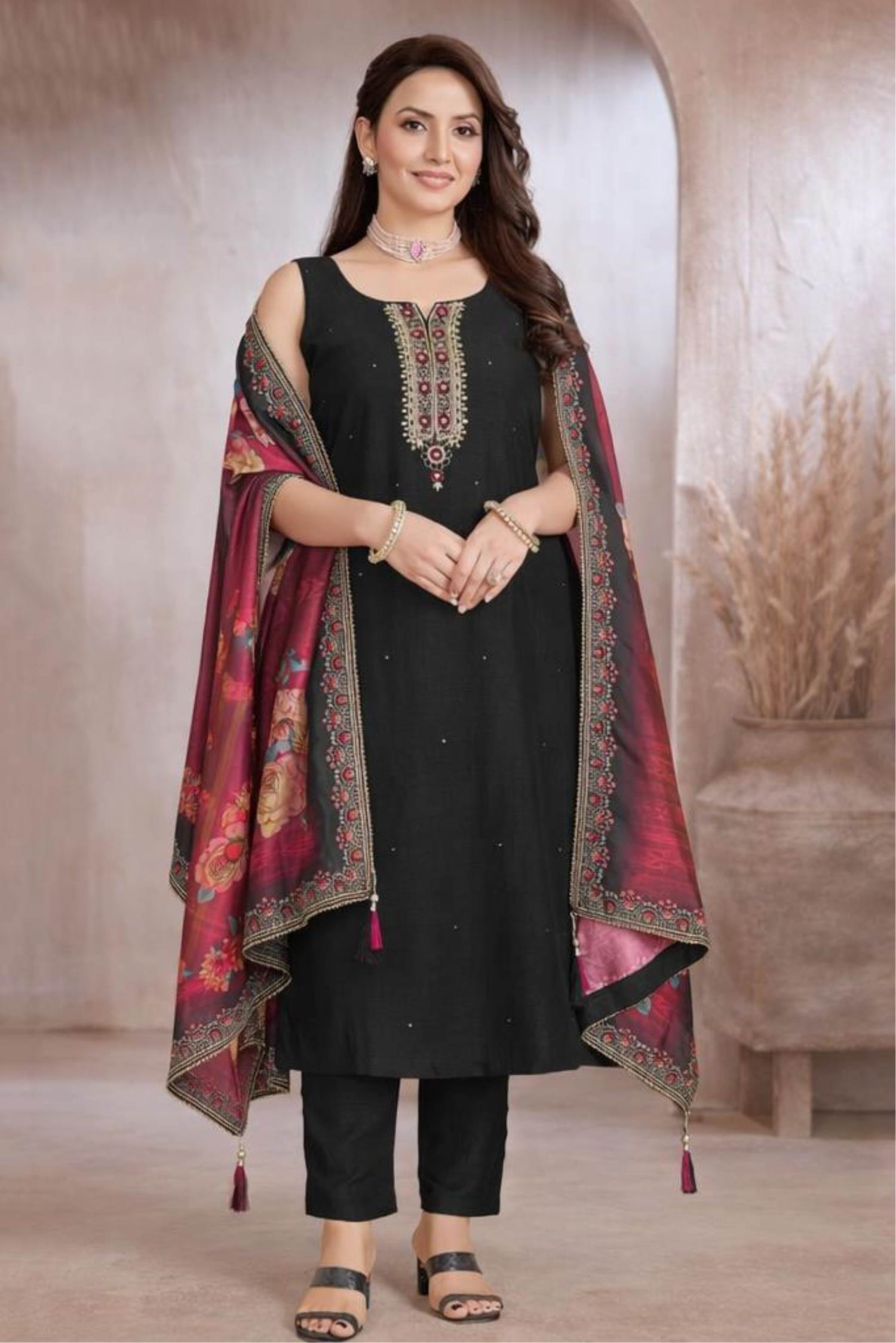 Black Color Party Wear Designer Straight Long Suit :: ANOKHI FASHION