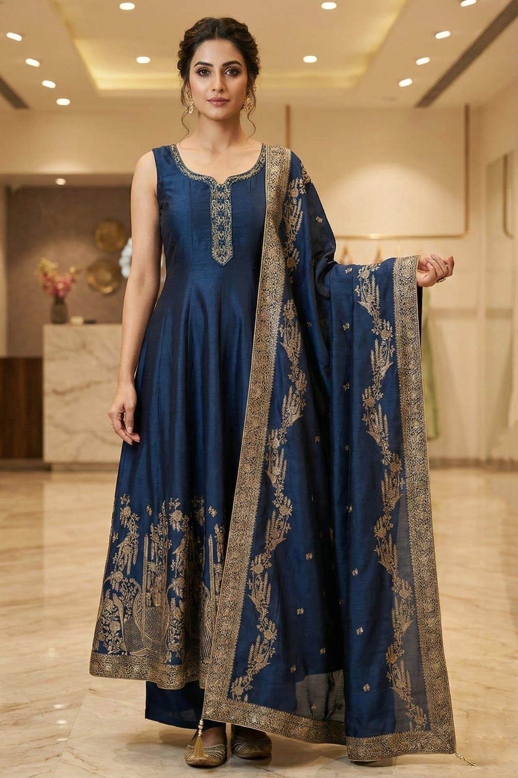 Blue Color Party Wear Designer Indo-Western Anarkali Plazo Suit
