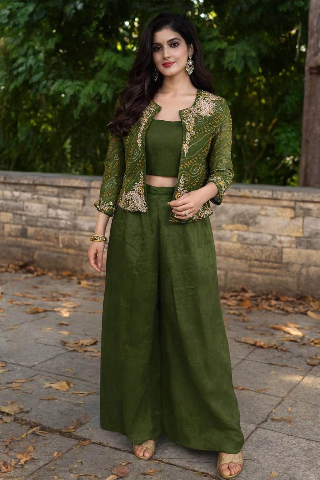 Green Color Party Wear Designer Plazo Choli with Koti :: ANOKHI FASHION