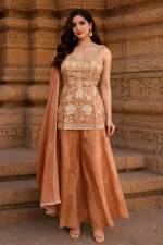 Peach Color Party Wear Designer Indo-Western Plazo Suit