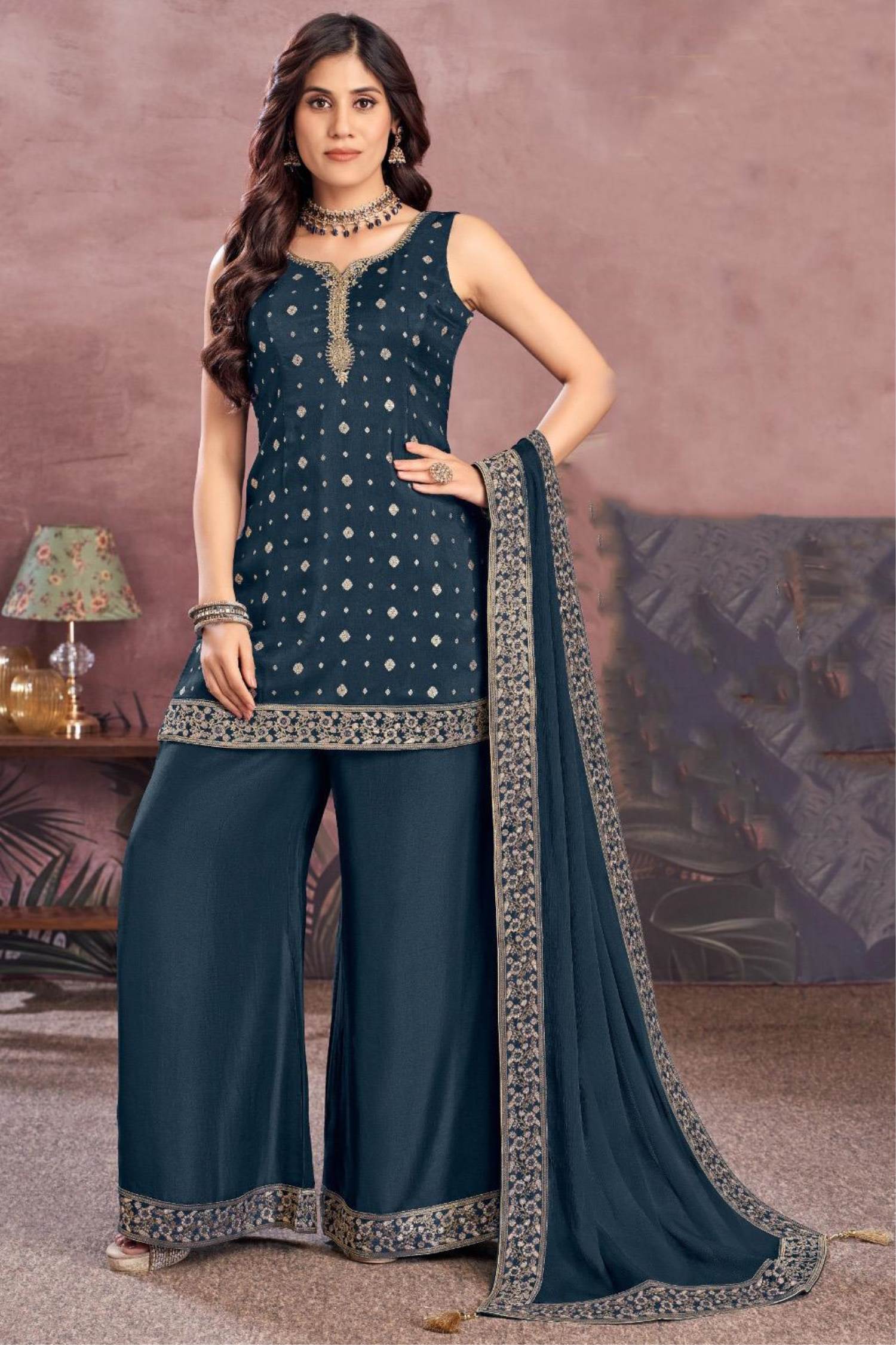 Navy Color Party Wear Designer Indo-Western Plazo Suit