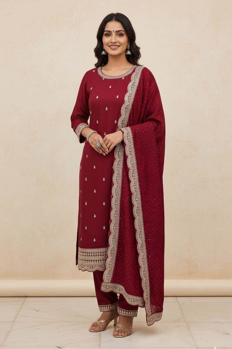 Wine Color Casual Collection Kurti Set