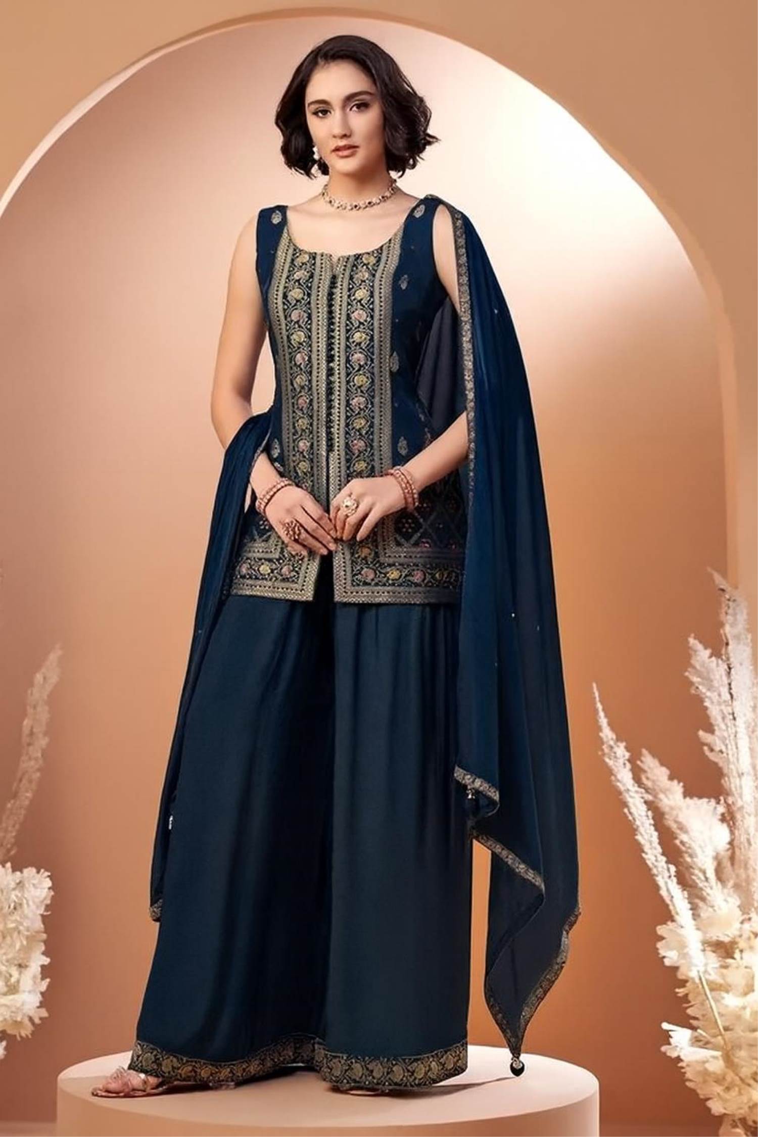 Navy Color Party Wear Designer Indo-Western Plazo Suit
