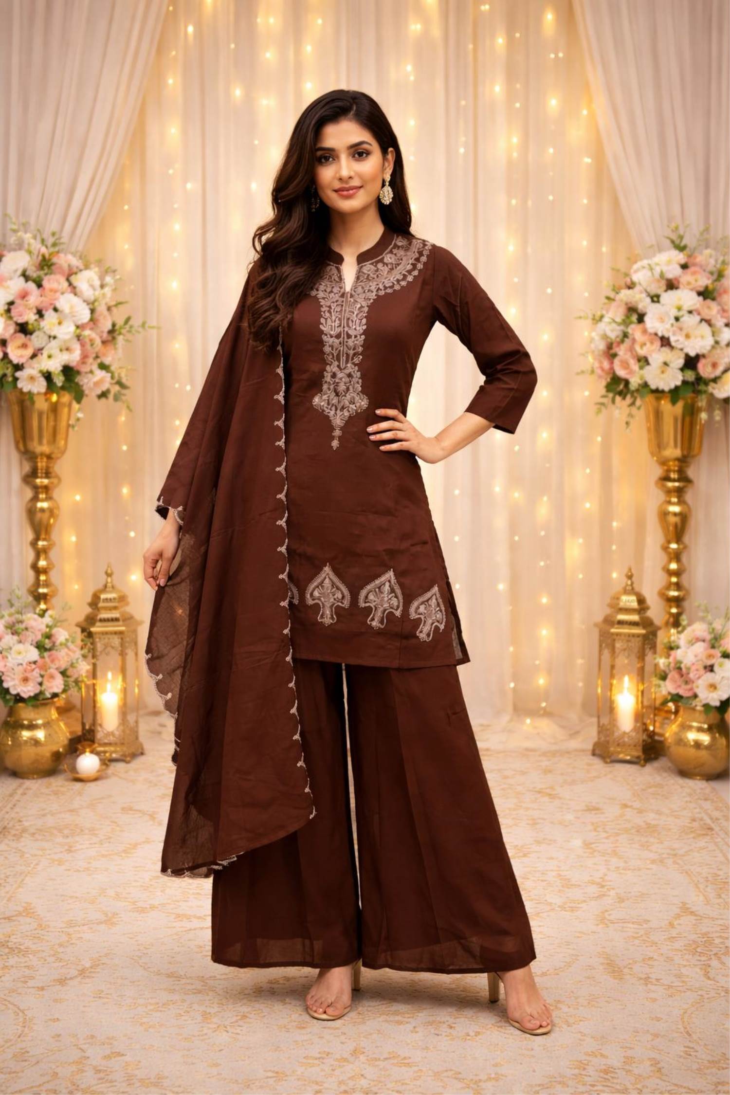 Brown Color Casual Collection Designer Plazo Suit :: ANOKHI FASHION