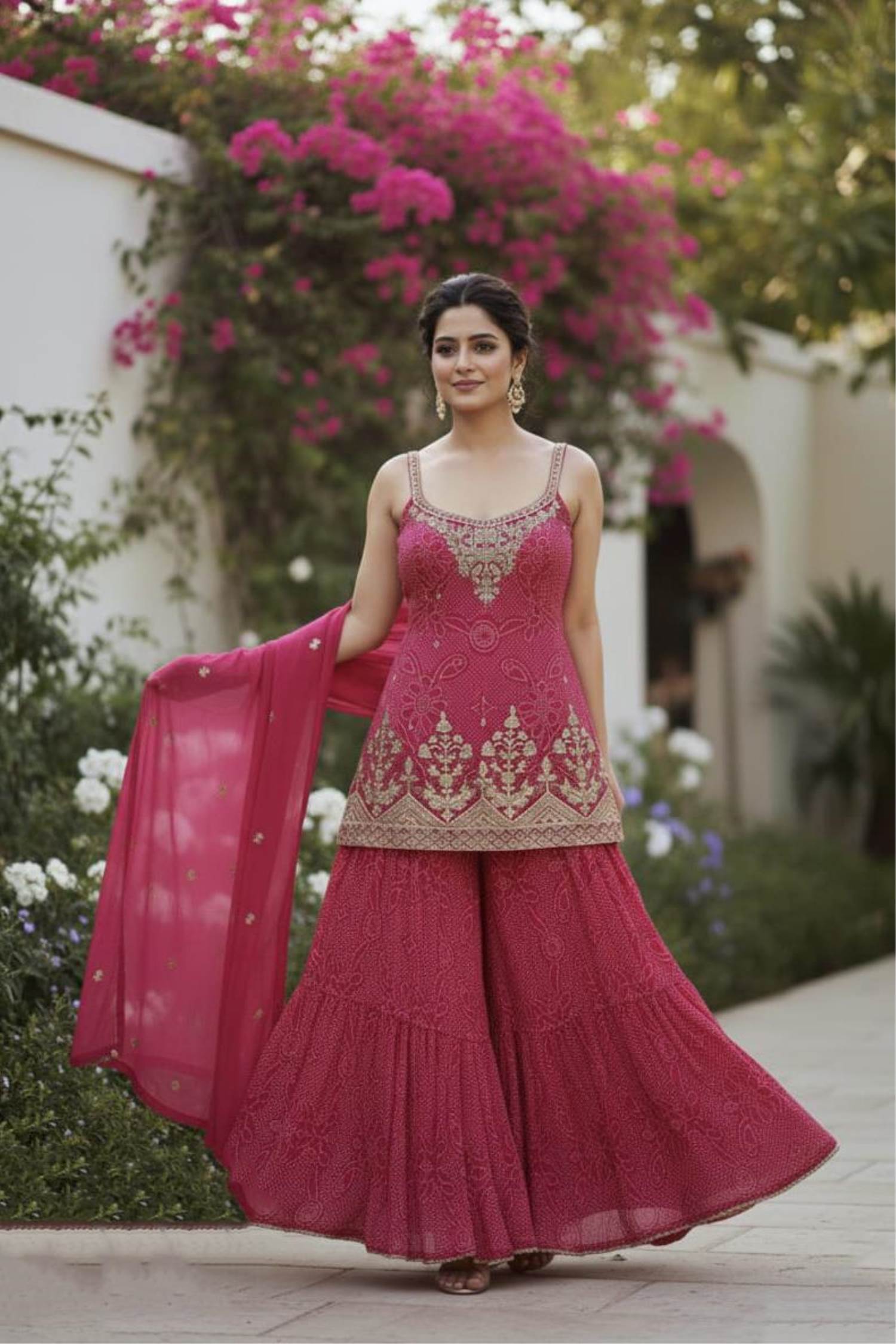 Rani Color Party Wear Designer Indo-Western Gharara Suit