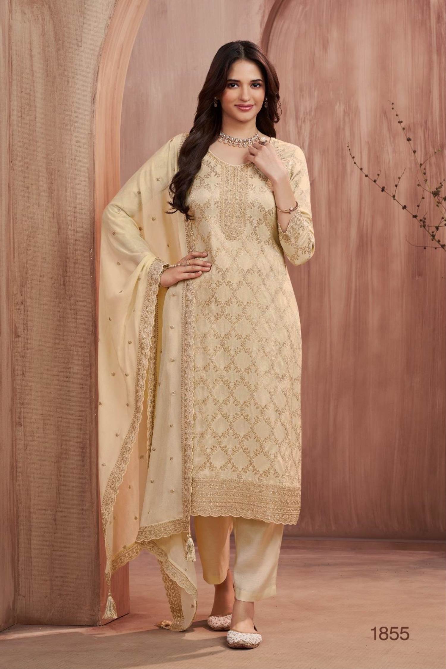 Cream Color Party Wear Designer Pent Suit :: ANOKHI FASHION