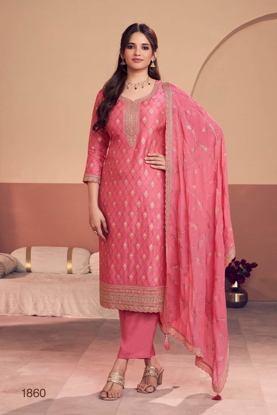 Gajari Color Party Wear Designer Pent Suit :: ANOKHI FASHION
