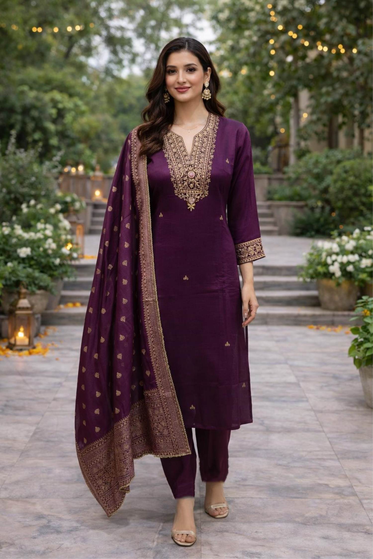 Wine Color Casual Collection Designer Kurti Set :: ANOKHI FASHION