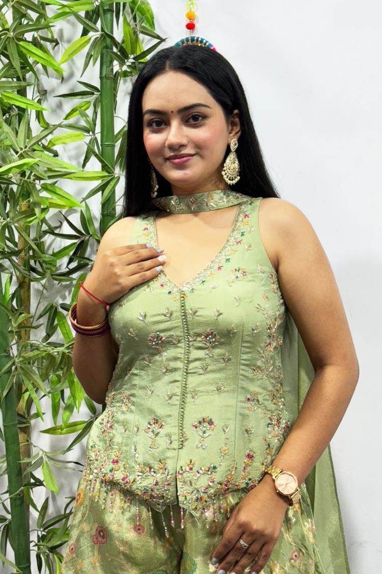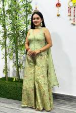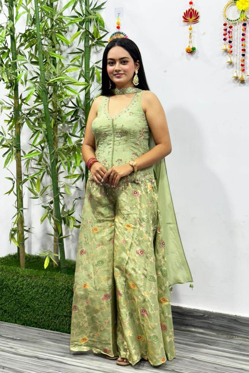 Pista Color Party Wear Designer Indo-Western Plazo Suit