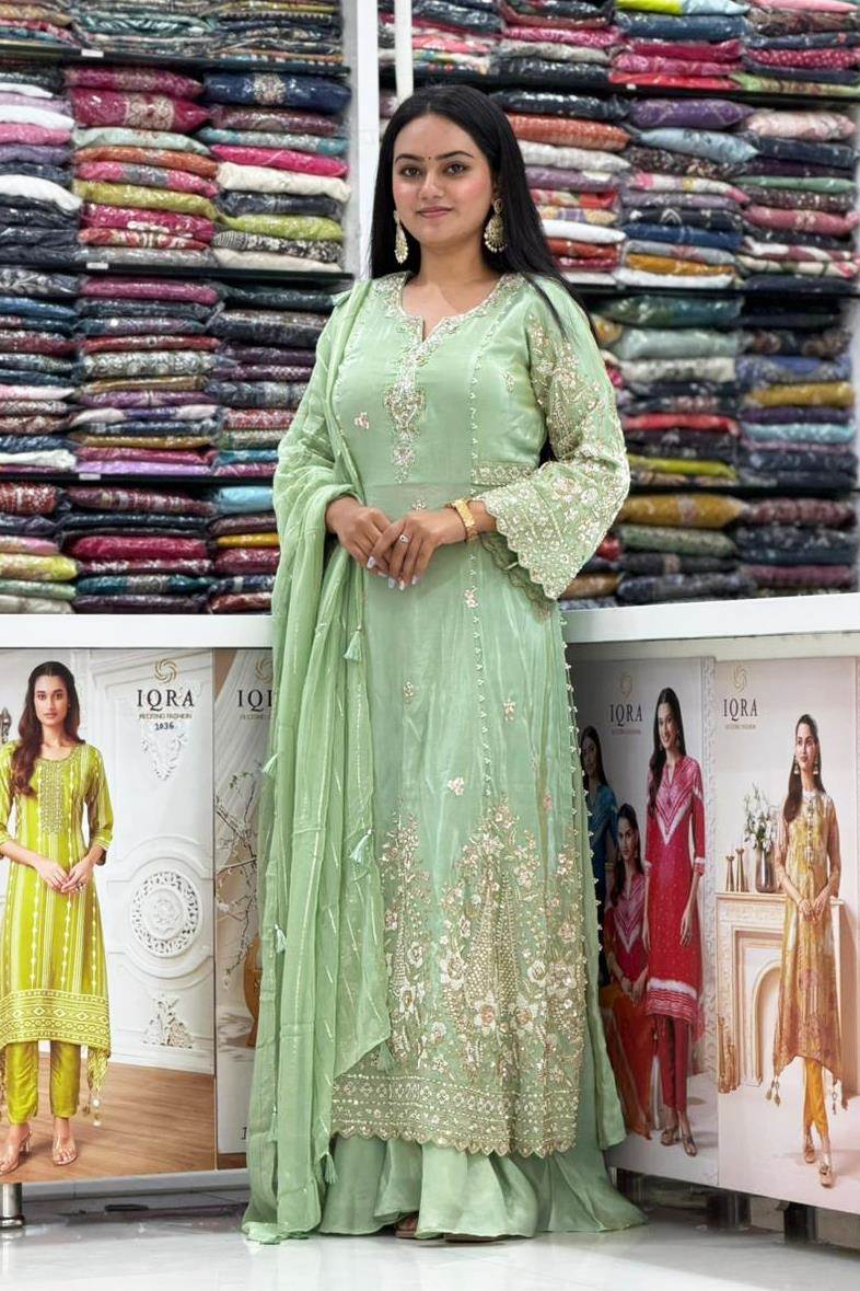 Pista Color Party Wear Designer Indo-Western Plazo Suit