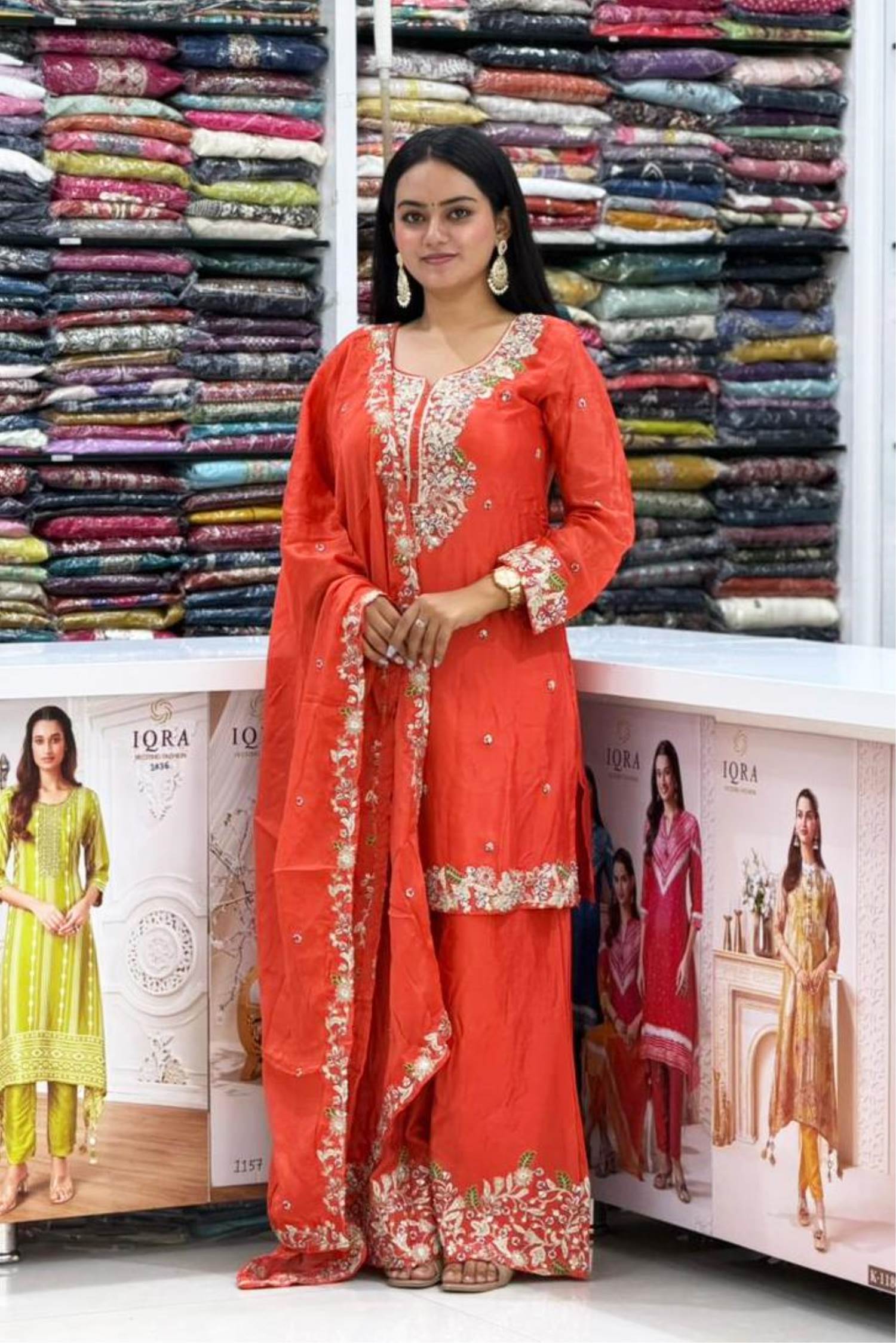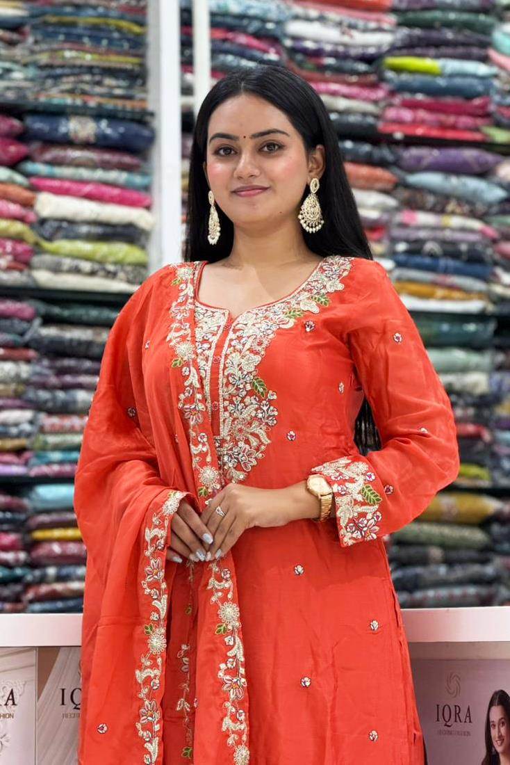 Rust Color Party Wear Designer Indo-Western Plazo Suit