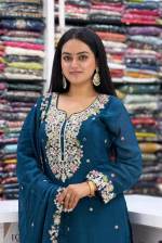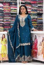 Peacock Color Party Wear Designer Indo-Western Plazo Suit