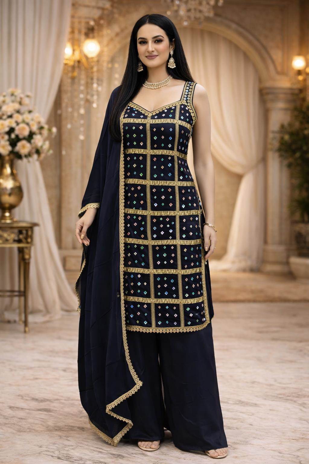 Blue Color Party Wear Designer Indo-Western Plazo Suit