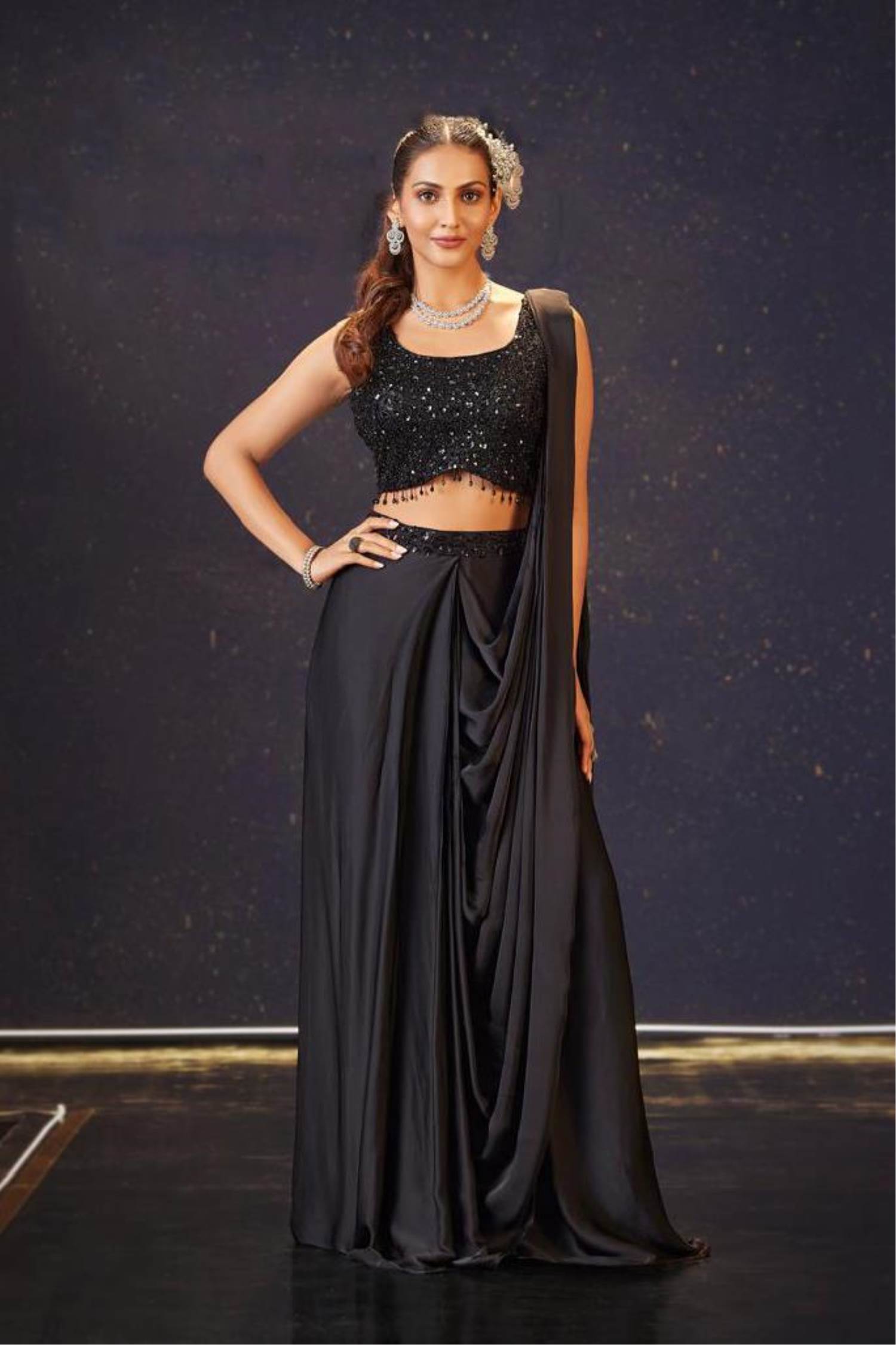 Black Color Party Wear Designer Ready To Wear Saree Choli :: ANOKHI FASHION