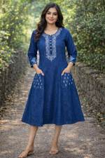 Denim Blue Color Designer Gown Kurti :: ANOKHI FASHION