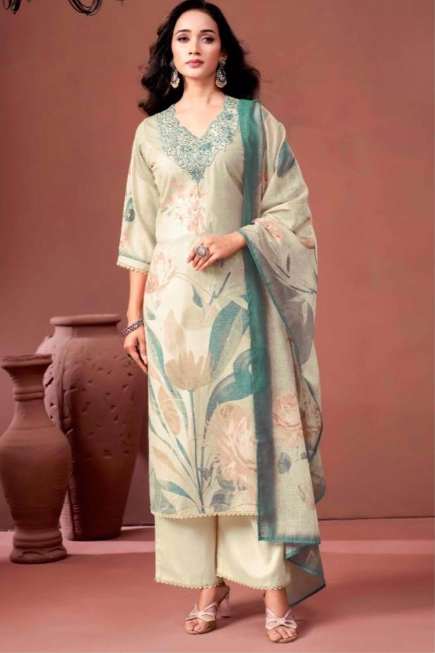 Cream Color Casual Wear Summer Collection Kurti Set