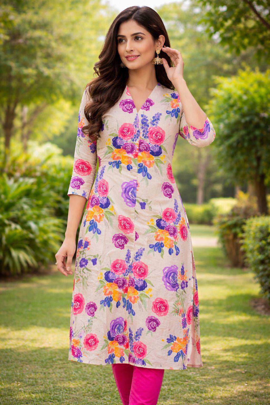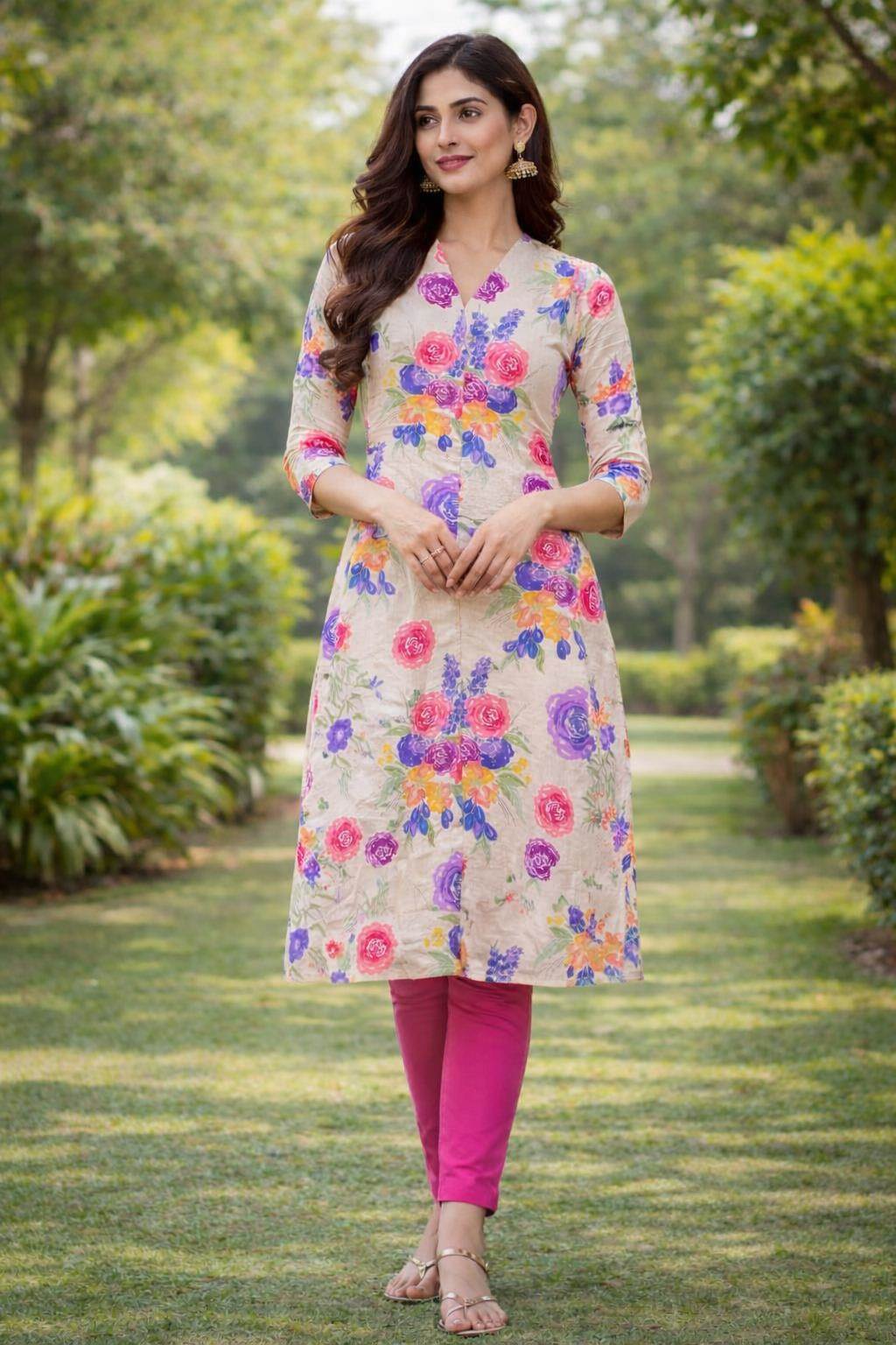 Cream Color Party Wear Designer Kurti :: ANOKHI FASHION