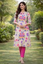 Cream Color Party Wear Designer Kurti