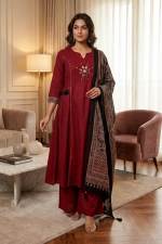 Maroon Color Casual Collection Kurti Plazo with Dupatta
