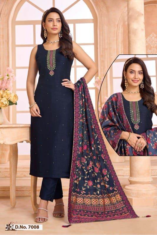 Navy Color Party Wear Designer Straight Long Suit
