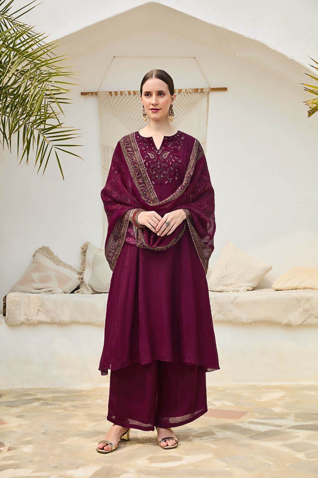 Maroon Colour Party Wear Plazo Suit :: ANOKHI FASHION