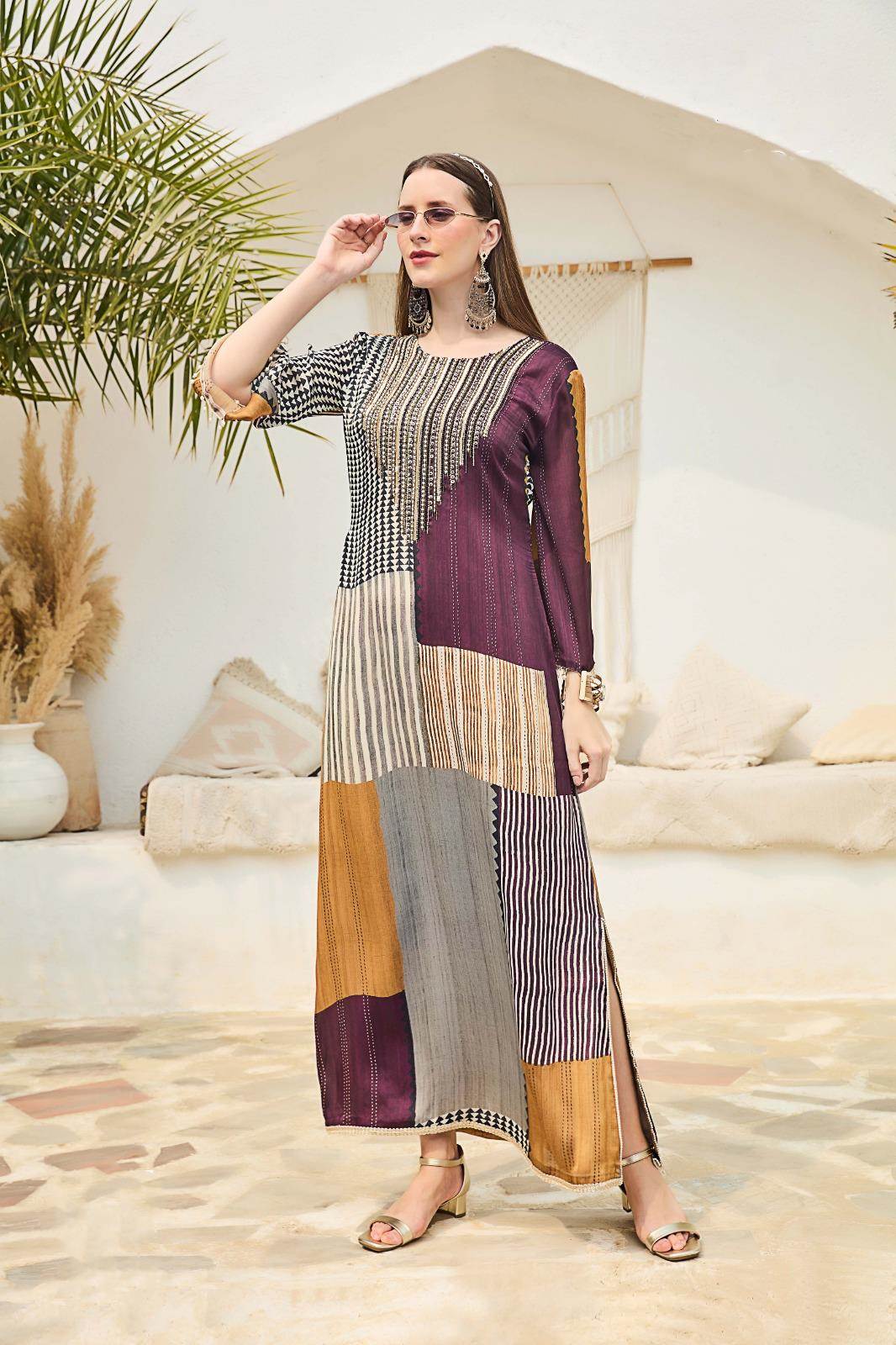 Wine Colour Designer Party Wear Straight Kurti :: ANOKHI FASHION