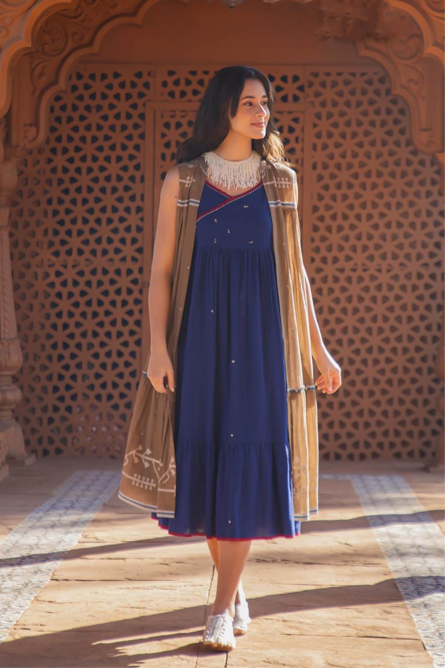 Brown Colour Casual Wear Gown Kurti With Shrug :: ANOKHI FASHION