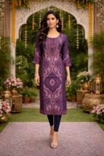 Purple Colour Designer Printed Casual Straight Kurti