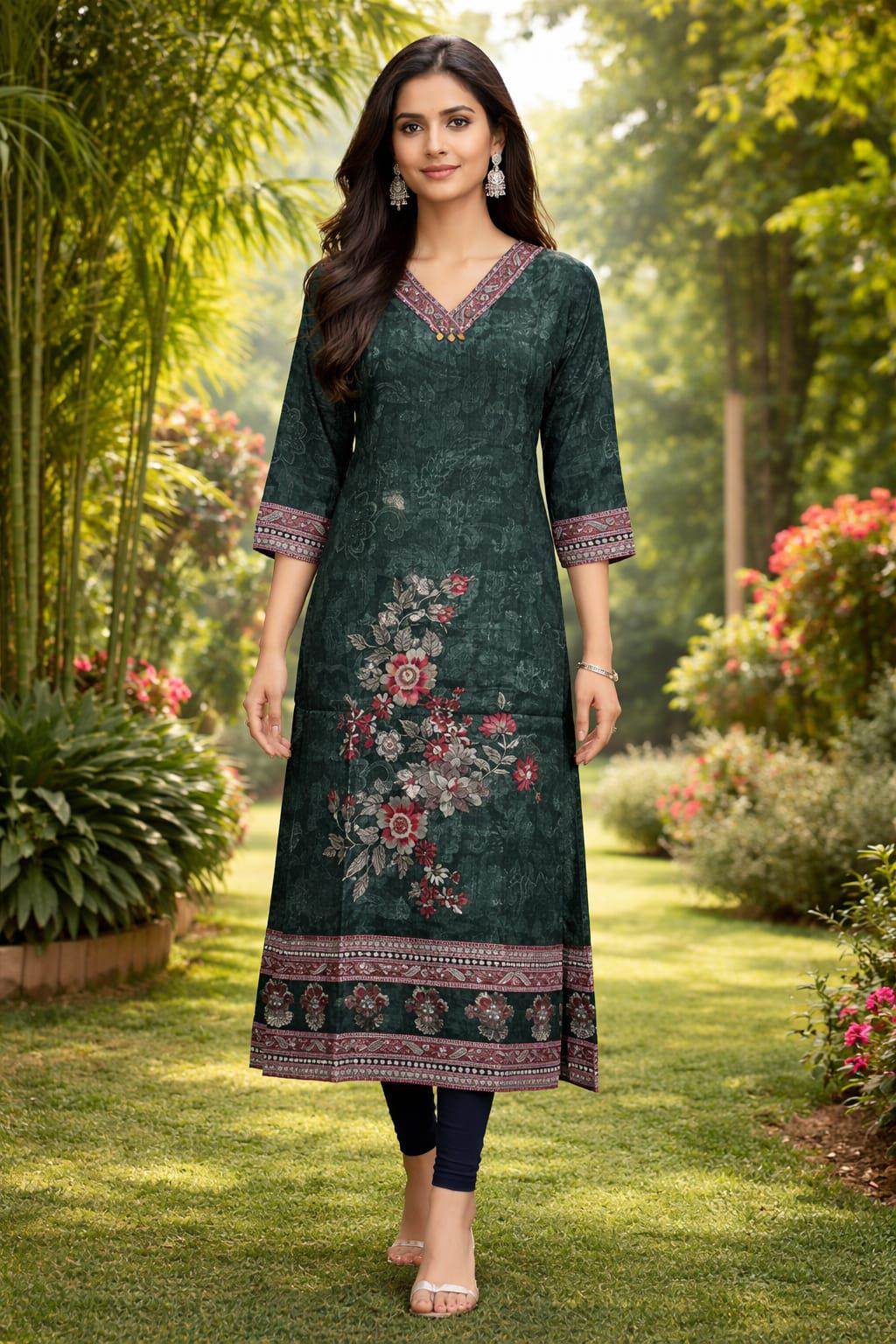 Blue Color Designer Flower Print Casual Kurti