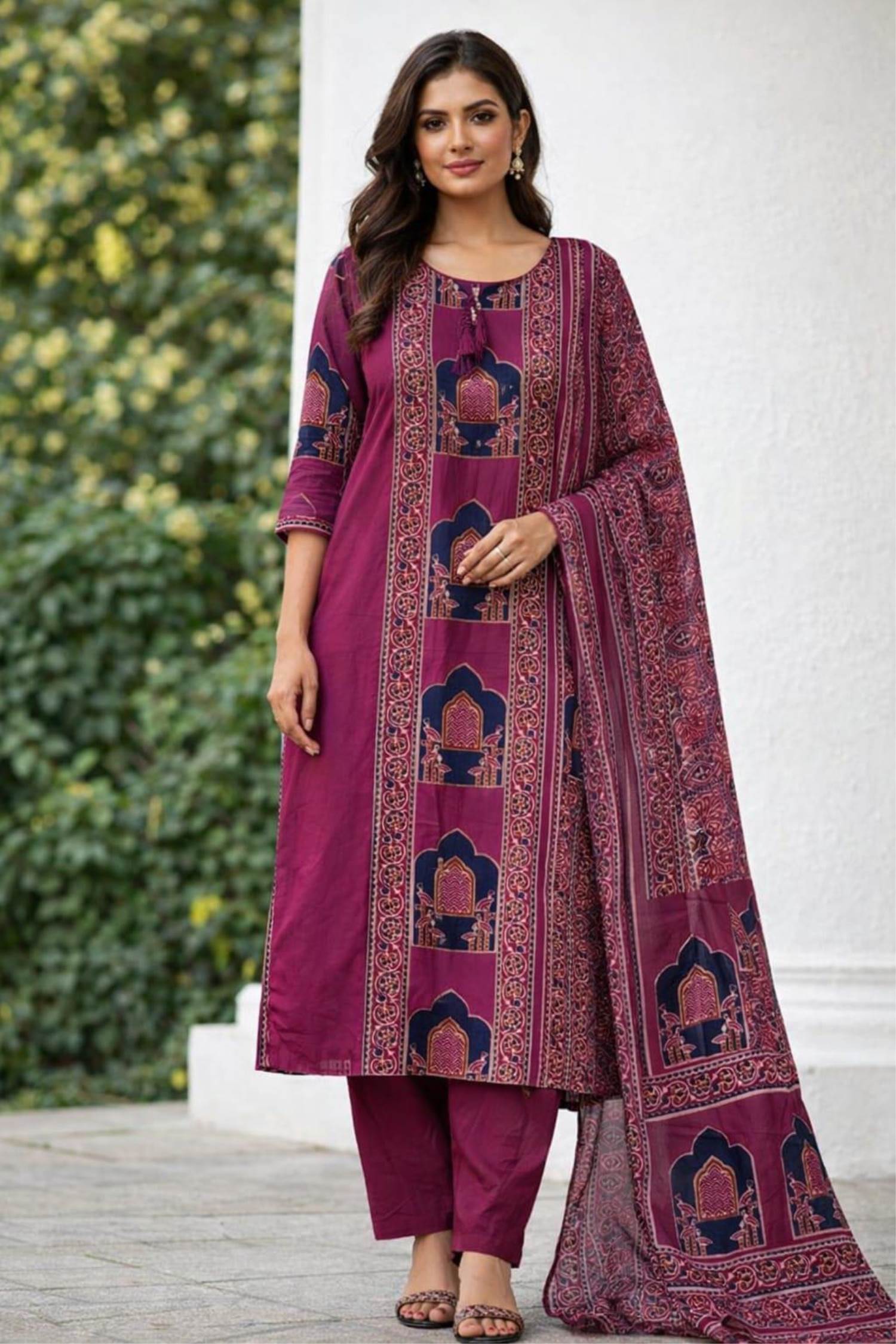 Megenta Colour Summer Collection Kurti Set With Dupatta :: ANOKHI FASHION